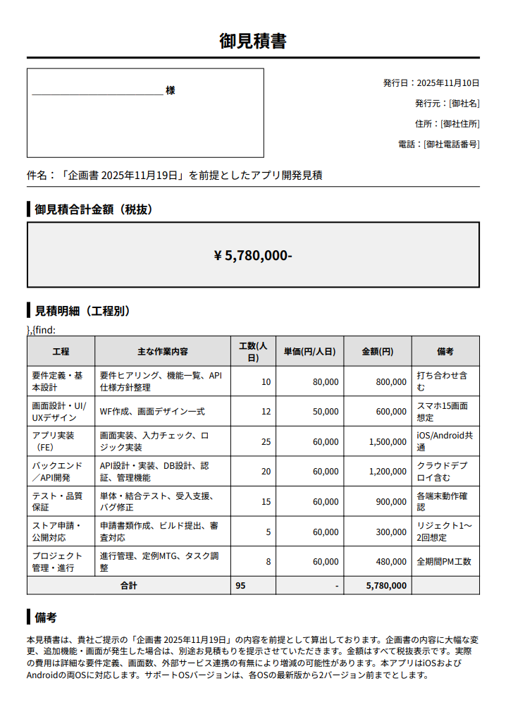 ■アプリ開発会社の見積金額の例