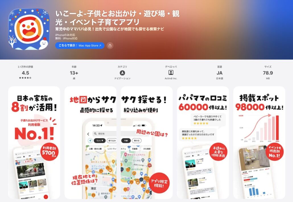 少し「旅」からは外れますが、ターゲットとするユーザーを「子育て中のパパママ」を定義、それに特化したUI/UXにすることで、こうした「お出かけアプリ」という方針でアプリを開発することも考えられます。