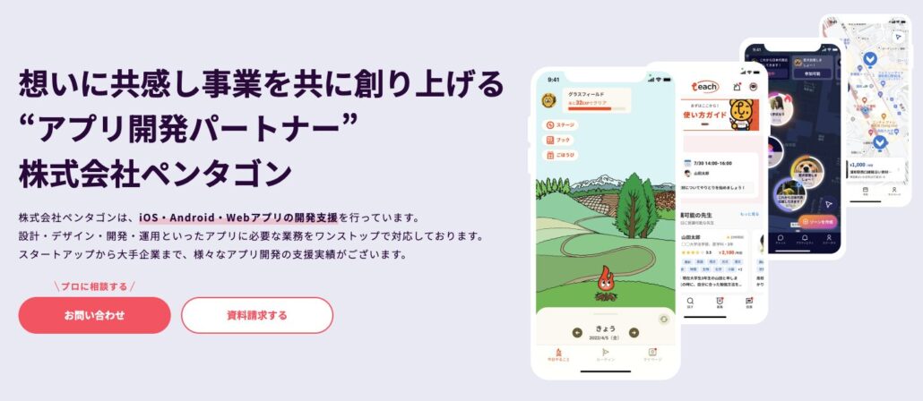 株式会社ペンタゴンは、iOS・Android・Webアプリの開発支援を専門とするアプリ開発パートナーです。企画・要件定義からUI/UXデザイン、開発、運用までをワンストップで支援しています。