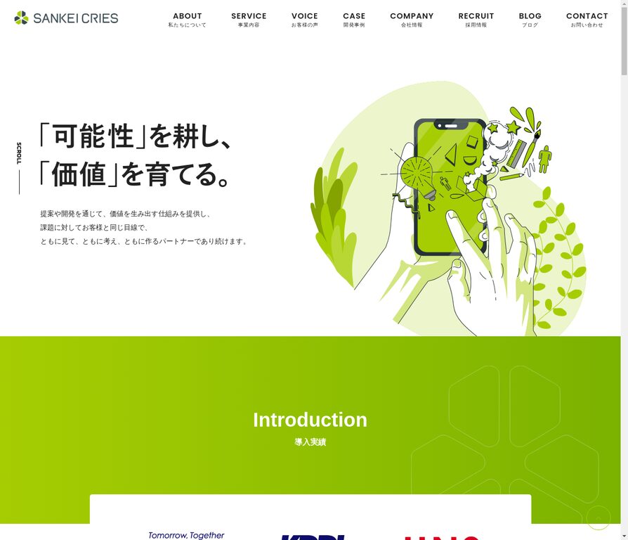 グローバル展開を視野に入れた大規模DXプロジェクトに強みを持つ会社です。デザイン思考を取り入れたUX戦略の策定から、開発・運用までを一気通貫で担当できる体制が整っています。プロジェクト推進では、アジャイルの考え方を取り入れながら仮説検証を高速に回し、要件が変わりやすいDX領域でも柔軟に方向修正しやすいのが特徴です。海外拠点を活用した開発体制も持っており、多言語対応や海外チームとの協業など国際的なプロジェクトにも対応可能。海外市場を前提としたプロダクト開発や、複数部門が関わる大規模案件をアジャイルに推進したい企業に向いています。