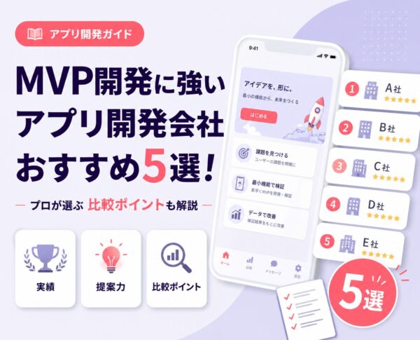 この記事では、MVP開発に強いアプリ開発会社を探している方向けに、おすすめの会社5選、比較しやすい一覧表、選ぶポイント、発注前によくある疑問をまとめて解説します。