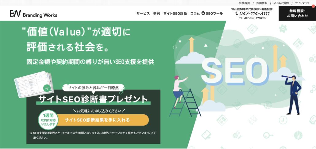 株式会社ブランディングワークスは、SEOコンサルティングやコンテンツマーケティング支援を主軸に事業を展開している会社です。SEOのみならず、広告、SNS、アフィリエイトなど、Webマーケティングの幅広い手法に対しても支援しています。